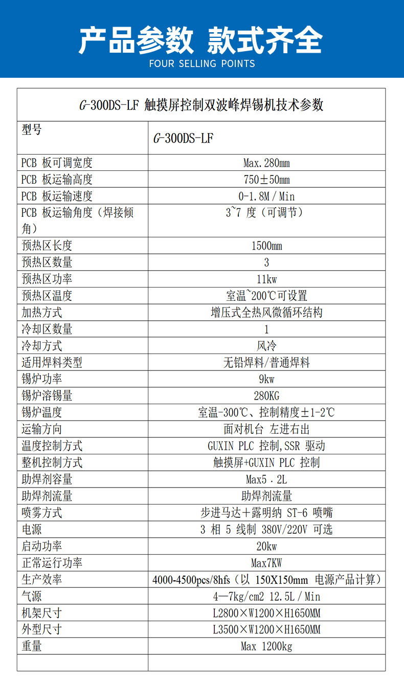 ◇錫爐波峰高度均采用電子變頻調速,可獨立控制波峰高度。