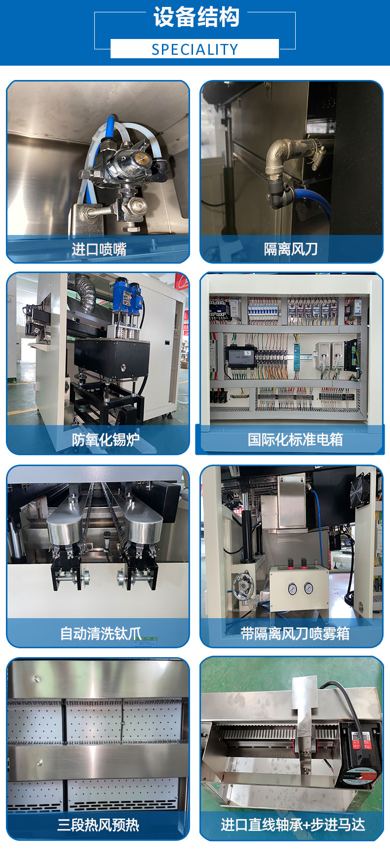 ◇專利步進馬達移動噴霧裝置,移動速度和寬度可隨PCB的寬度自動調節,選擇性噴霧可以有效節約25%助焊劑浪費。