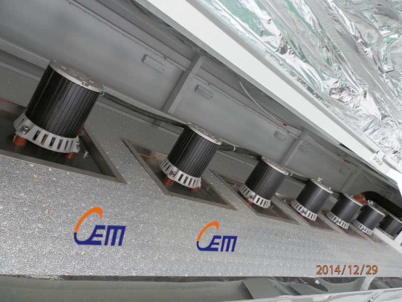 從貯熱板通孔中吹出的高溫熱空氣通過變流速層流性變速后到達PCB表面及各種元器件、錫漿(貼片膠),通過熱傳遞將高溫氣體中熱量交換至PCB焊料上,保證機器內的溫度分布和不同加熱工件溫度的均一性。