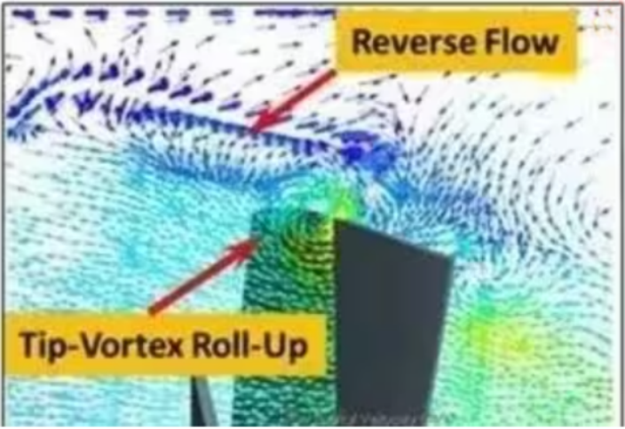 1風扇葉片旋轉時,葉尖線速度最大,形成強離心氣流集中于外圍;而中心區域線速度低,氣壓梯度小,導致熱風明顯減弱(物理特性)類似飛機翼尖渦流原理,中心形成低壓區故由于風葉結構的限制,導致溫區橫向溫差大