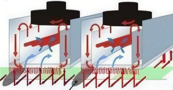 風葉熱風加熱結構的穿透力不足,而風輪增壓式熱風結構正是為解決這個問題誕生的回流焊增壓熱風結構的核心原理是通過強制高壓氣流穿透高元件陰影區,解決傳統熱風爐的熱傳遞不均勻問題