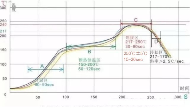 (5).爐溫測試:回流焊爐溫正常后,工作指示燈由黃變綠后,再等候5分鐘溫度穩(wěn)定,待所有溫區(qū)以及參數(shù)均達(dá)到設(shè)定值后用測溫儀測量爐內(nèi)各溫區(qū)是否正常,空載溫差在允許范圍內(nèi)+/-2℃;滿載情況下允許范圍內(nèi)+/-10℃