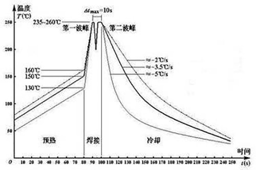 預熱的作用是使助焊劑中的溶劑充分揮發,以免印制板通過焊錫時,影響印制板的潤濕和焊點的形成;使印制板在焊接前達到一定溫度,以免受到熱沖擊產生翹曲變形。一般預熱溫度控制在180~ 200℃,預熱時間1 ~ 3分鐘。