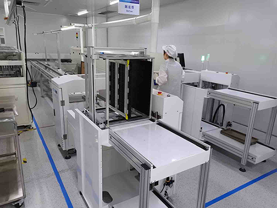 惠倫晶體晶振烤膠車間內(nèi)場景(拍攝照片經(jīng)由客戶同意) 自動上下料機+雙軌道回流焊雙倍產(chǎn)能